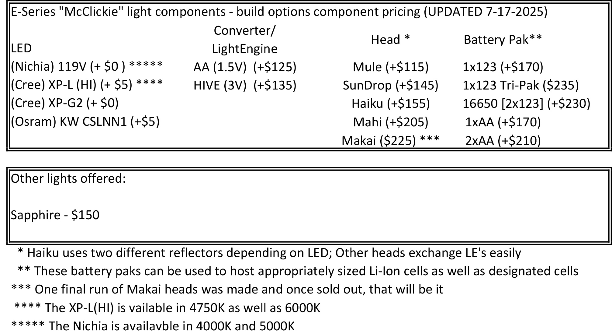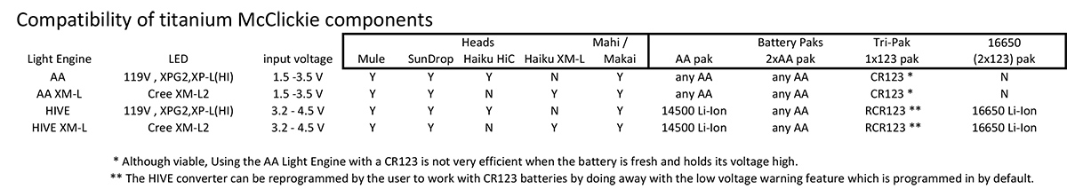 Below from L-R Mule Head on 1xAA, Haiku head on 1x123, SunDrop head on 1xAA and Haiku head on 1xAA